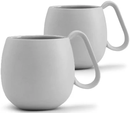 Set of 2 porcelain mugs that are the perfect excuse for a moment of relaxation. The mugs have a simple, clean design with striking, comfortable handles and the round shape fits well in the hand. The matte finish emphasizes the softness of the material.