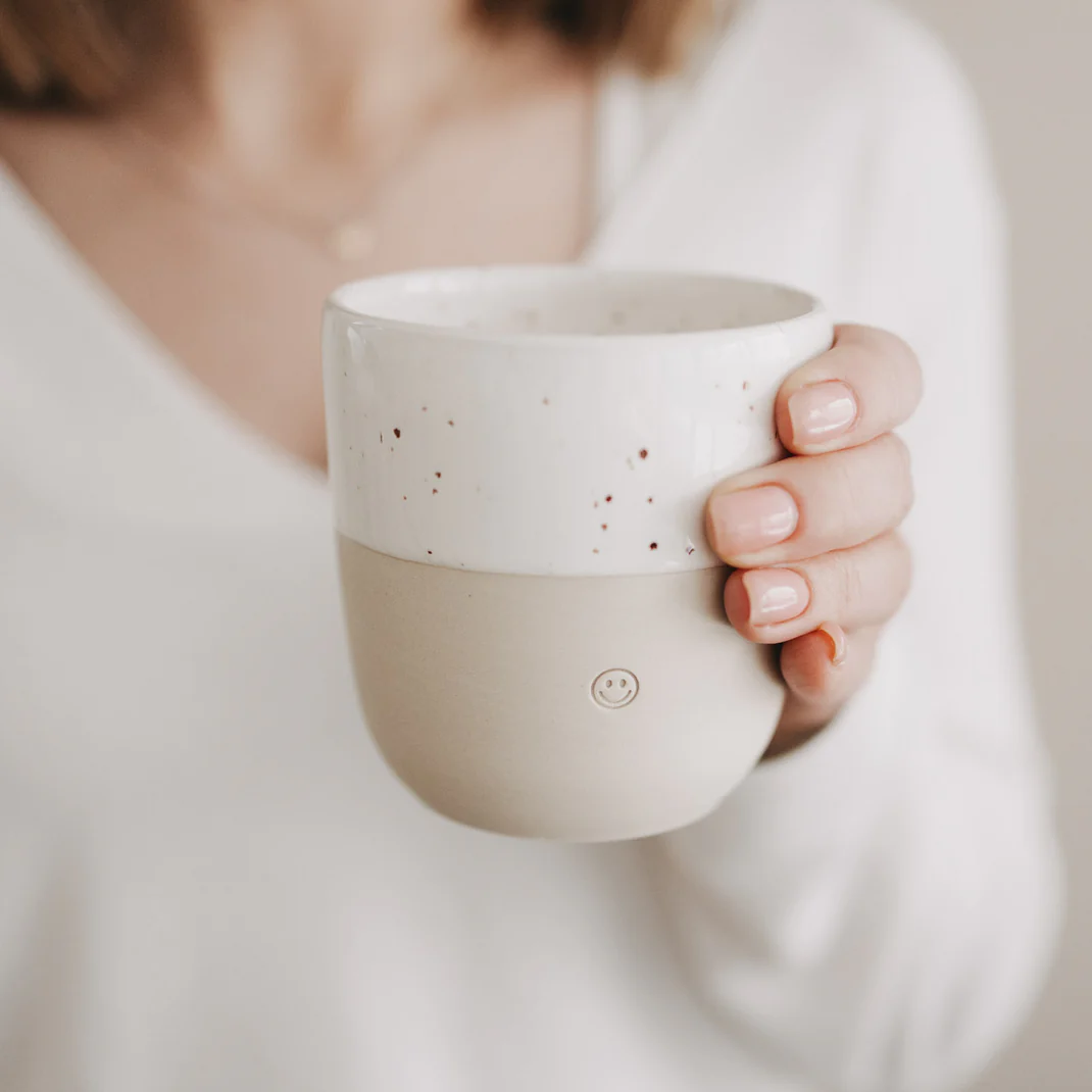 Ces belles tasses sont fabriquées à la main avec amour au Portugal pour ceux qui aiment l'individualité de l'argile et de la glaçure. Parce que chaque tasse a sa propre touche unique. Parce que toutes les tasses sont fabriquées à la main, cuites, gaufrées, poncées, émaillées et recuites, il existe des différences dans la profondeur, la hauteur et la rectitude de l'impression. Le design minimaliste et les nuances de couleurs naturelles sont complétés par des citations dans un magnifique relief aveugle.